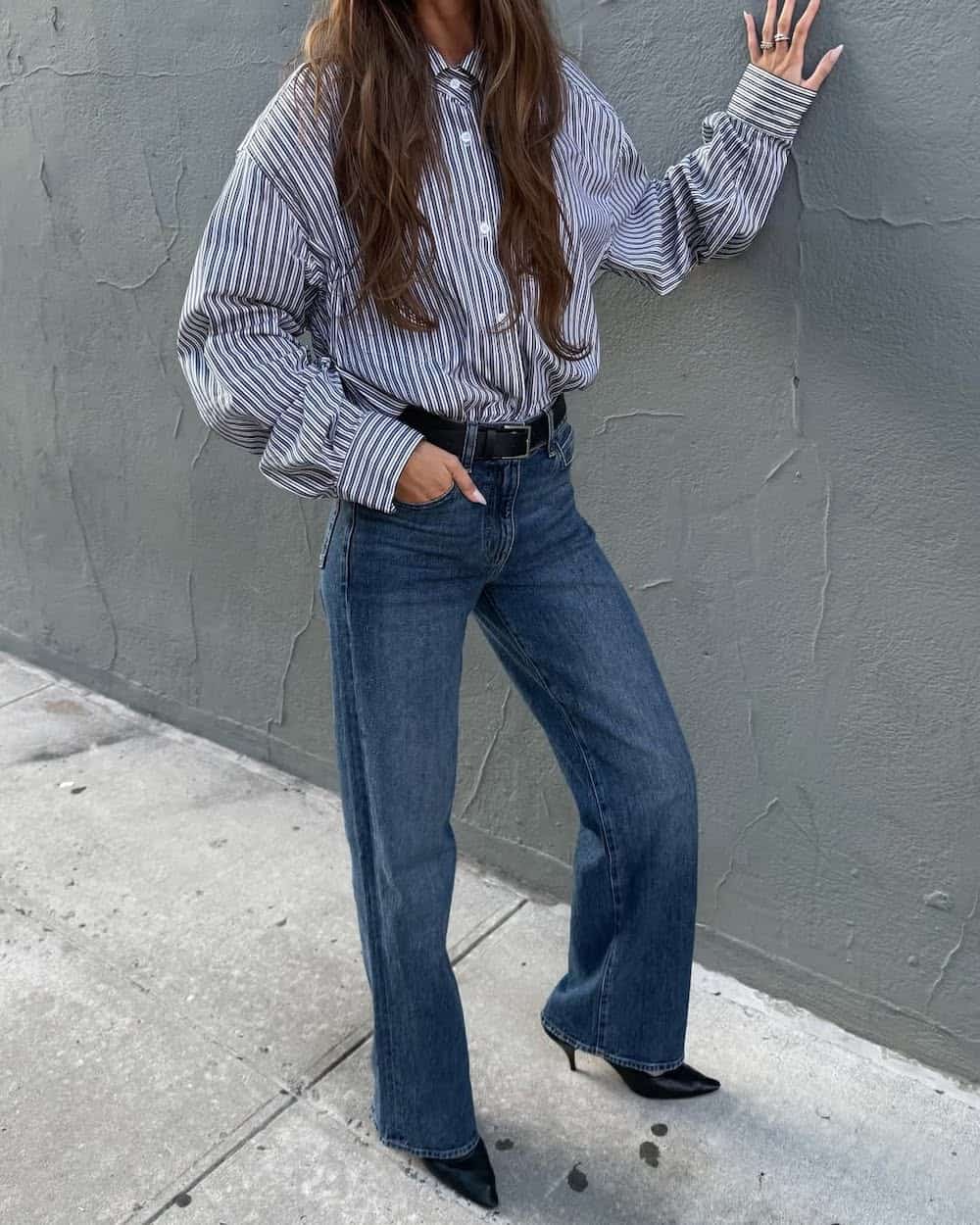 A striped polo top feels preppy and fresh for spring, and I love this paired with simple leather loafers for an effortless old-money vibe. With light blue wide-leg jeans sandwiched between, this look has the perfect casual-chic aesthetic.