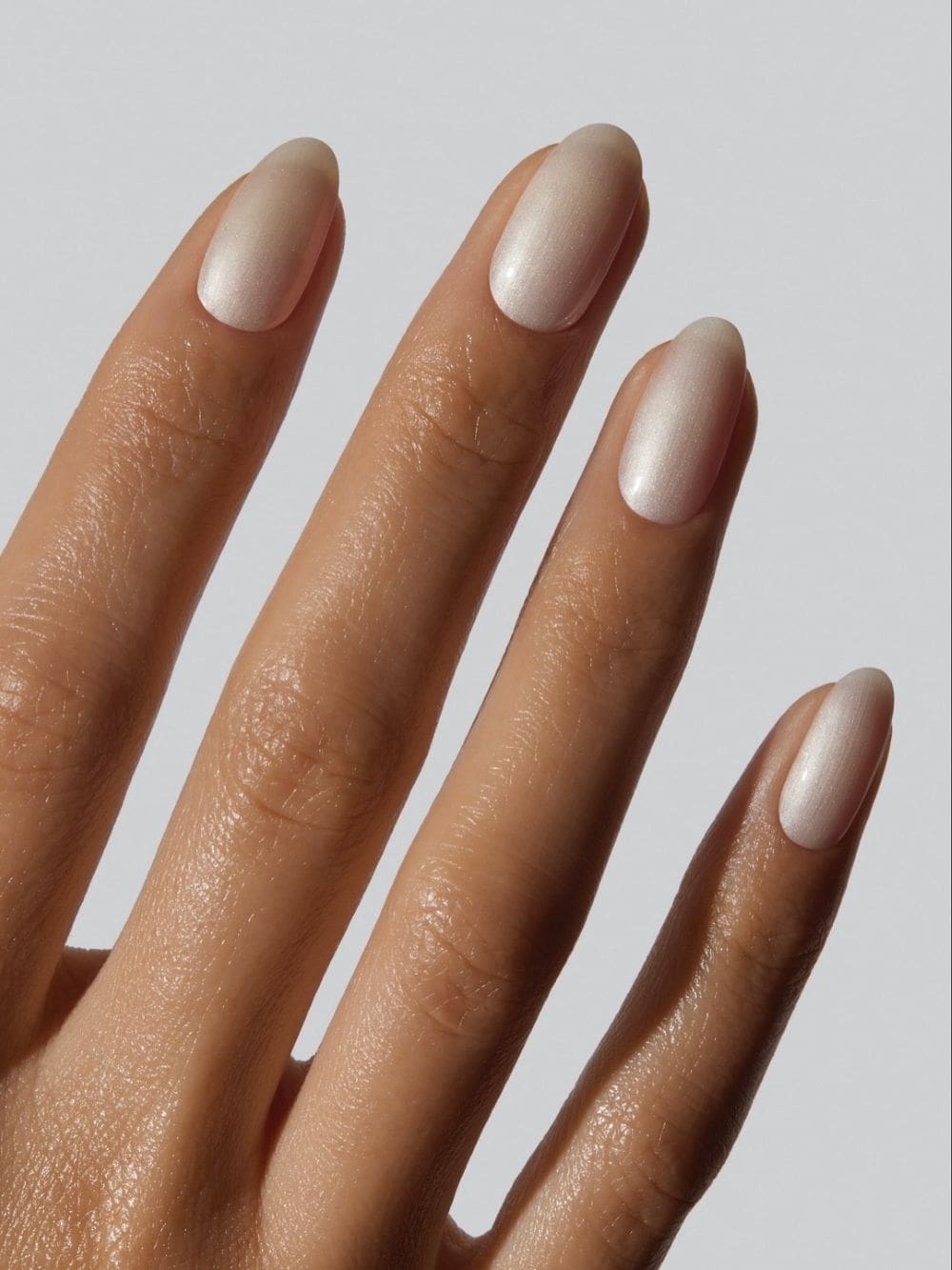 This subtle, opal mani by @bara.hoyle is perfect for an elevated, playful natural nail. I love the simple, milky base here, while the shimmering topcoat adds enough sparkle for an alluring finish.