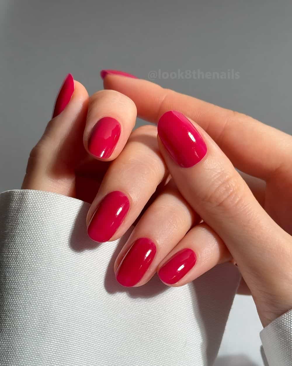 If you want to blend vibrant spring colors with a classic old money look, a refreshing raspberry nail polish might just be for you. This color has the allure and elegance of the quintessential quiet luxury red, yet adds a playful, feminine spring feel.