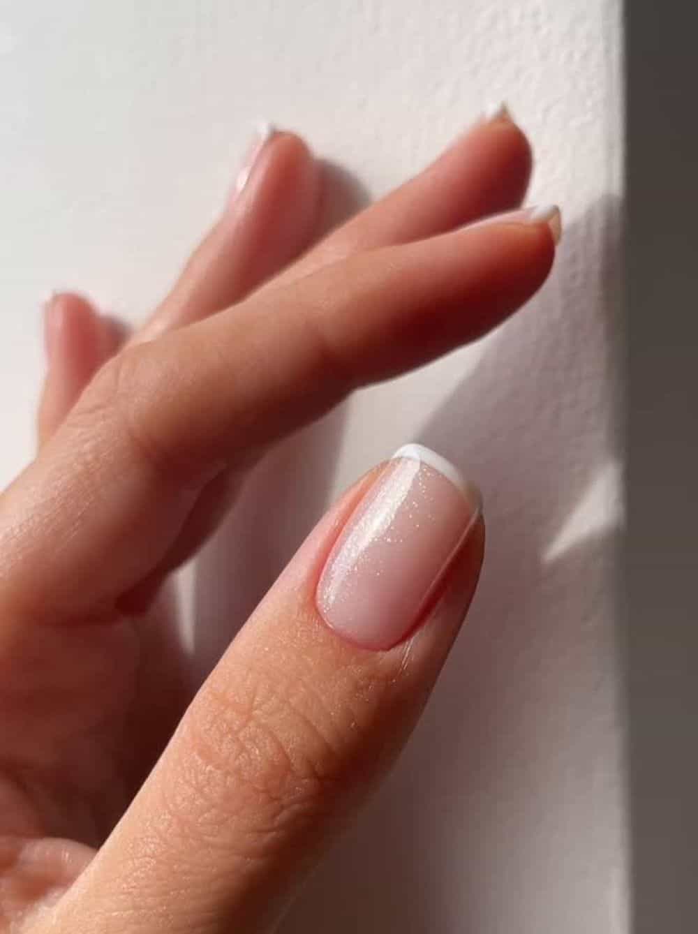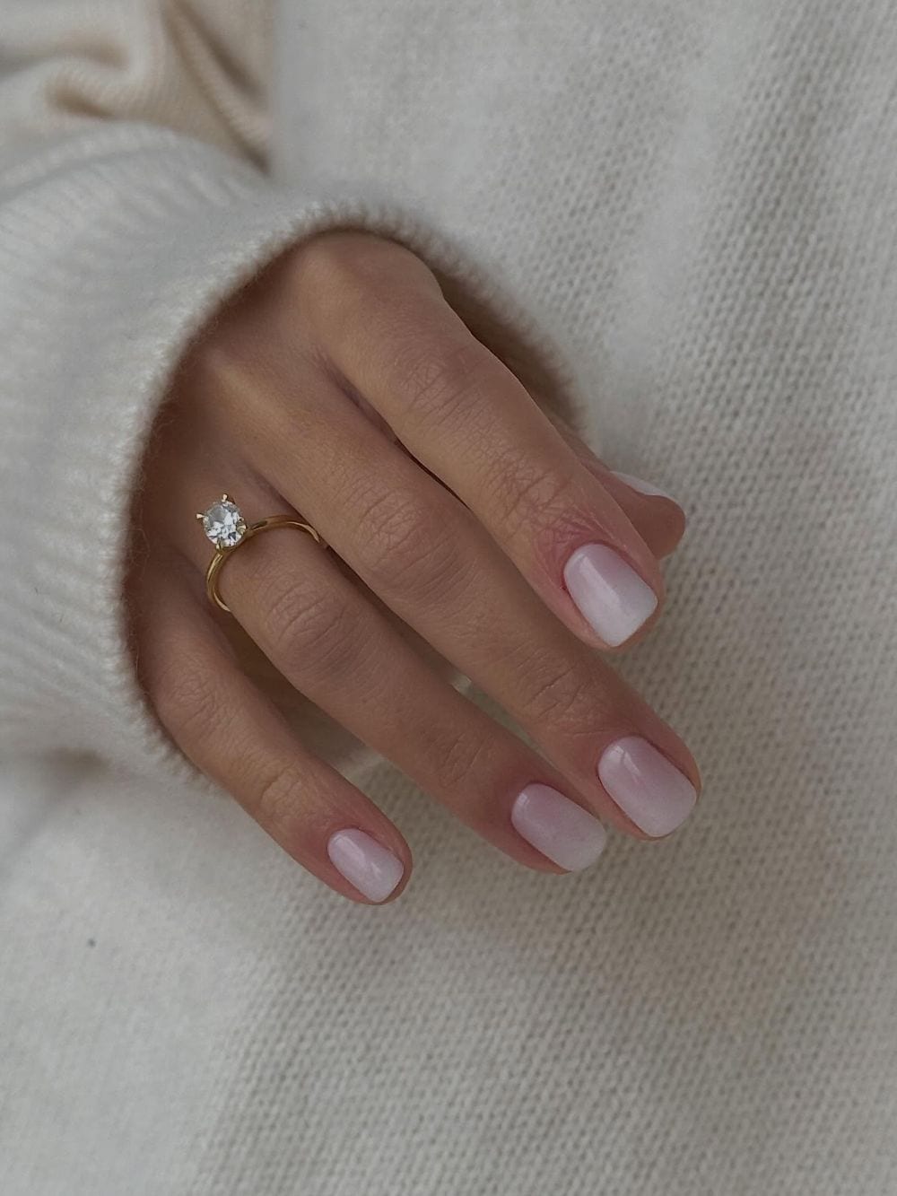 A subtle pink-and-white ombre blends gorgeous, classic ivory nails with a beautiful pastel tone for the ultimate spring old money nails.