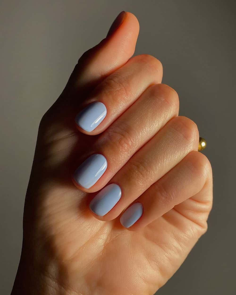 A soft, powdery blue is an obvious choice for spring nails, and while it’s not a typical choice for the old money aesthetic, this pastel, muted tone will look elegant with any outfit in spring 2026.
